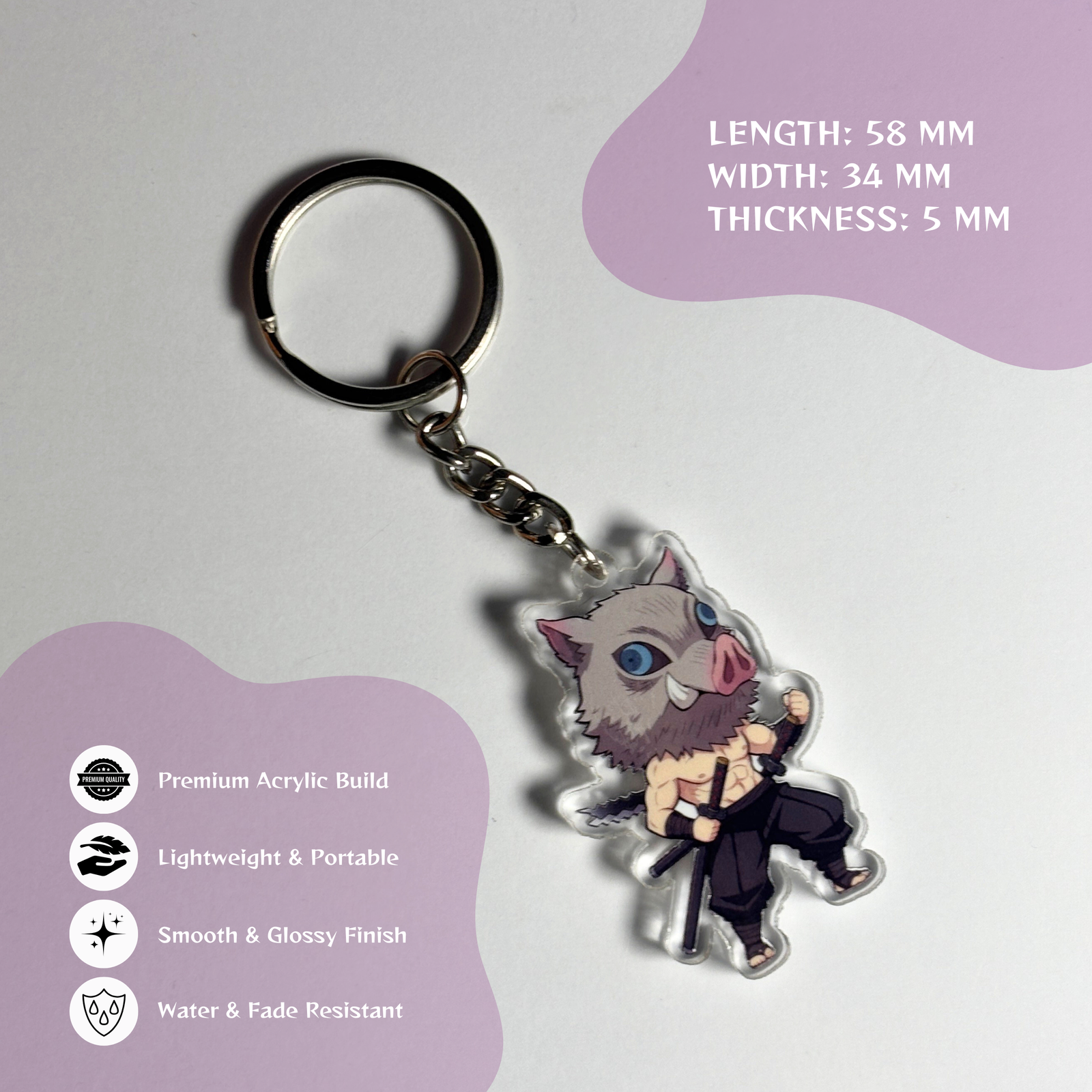 Inosuke Hashibira Chibi Acrylic Keychain – Demon Slayer Anime Keyring