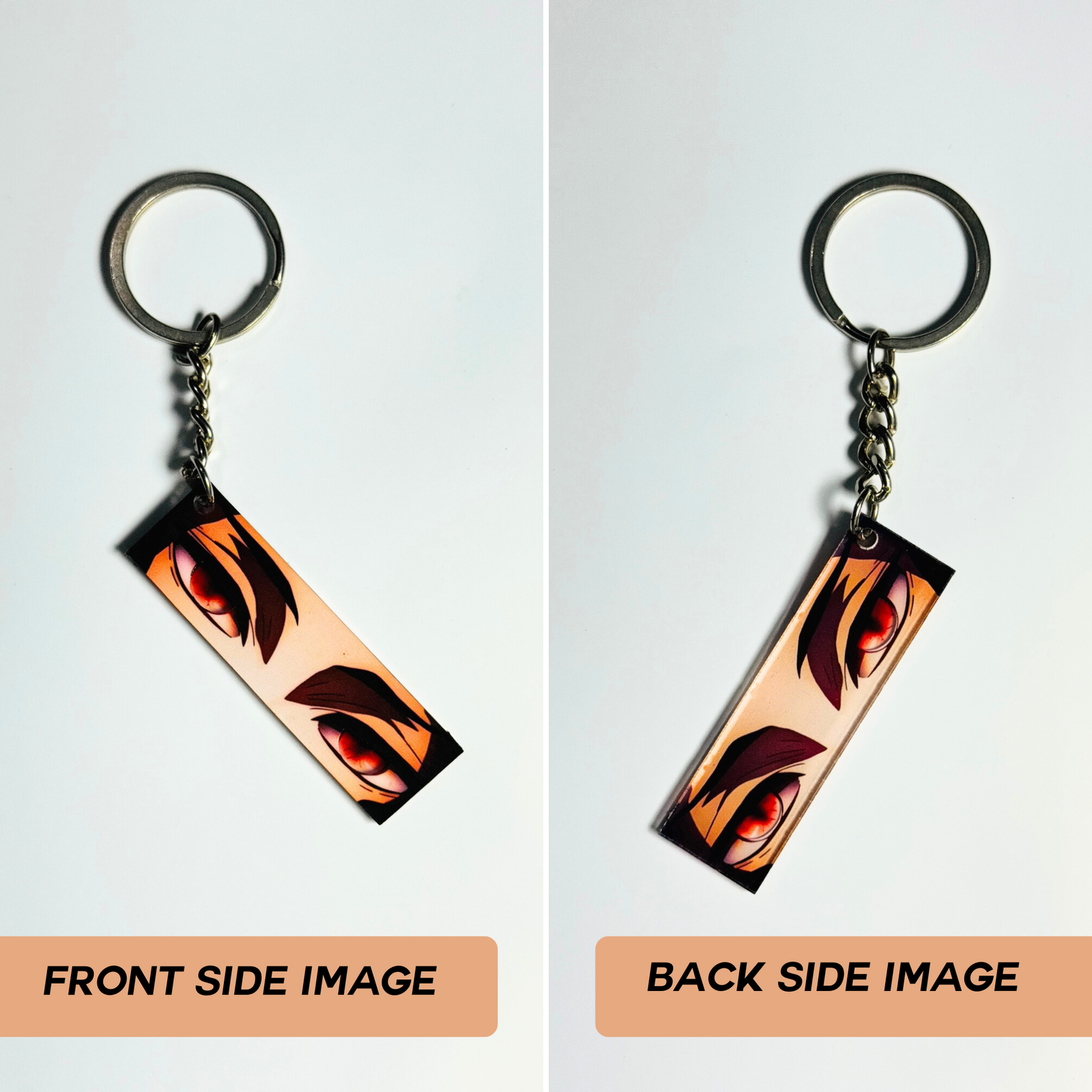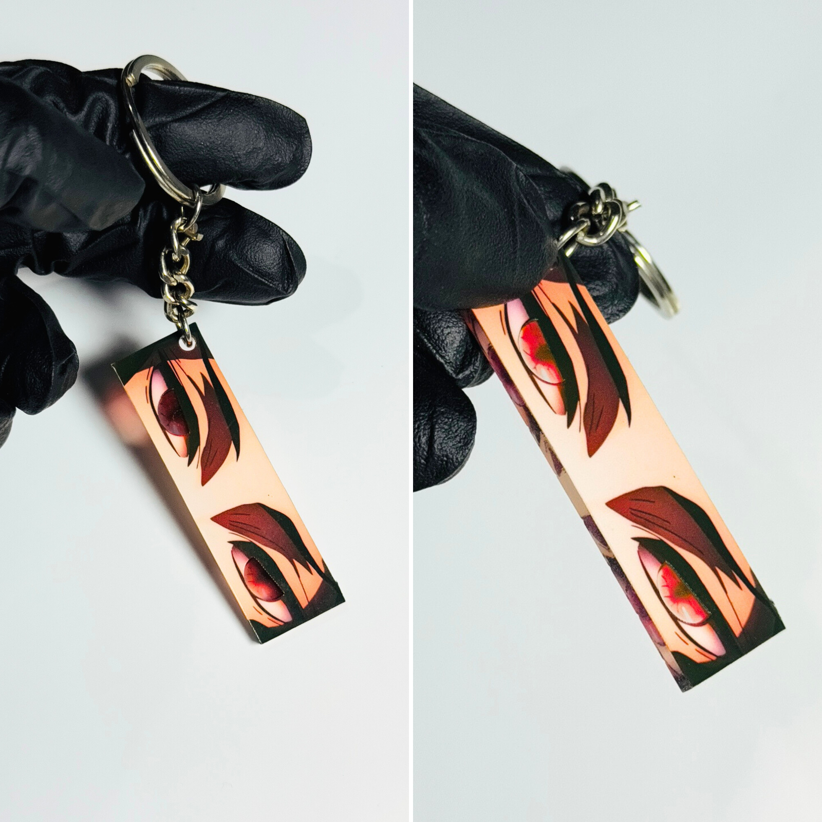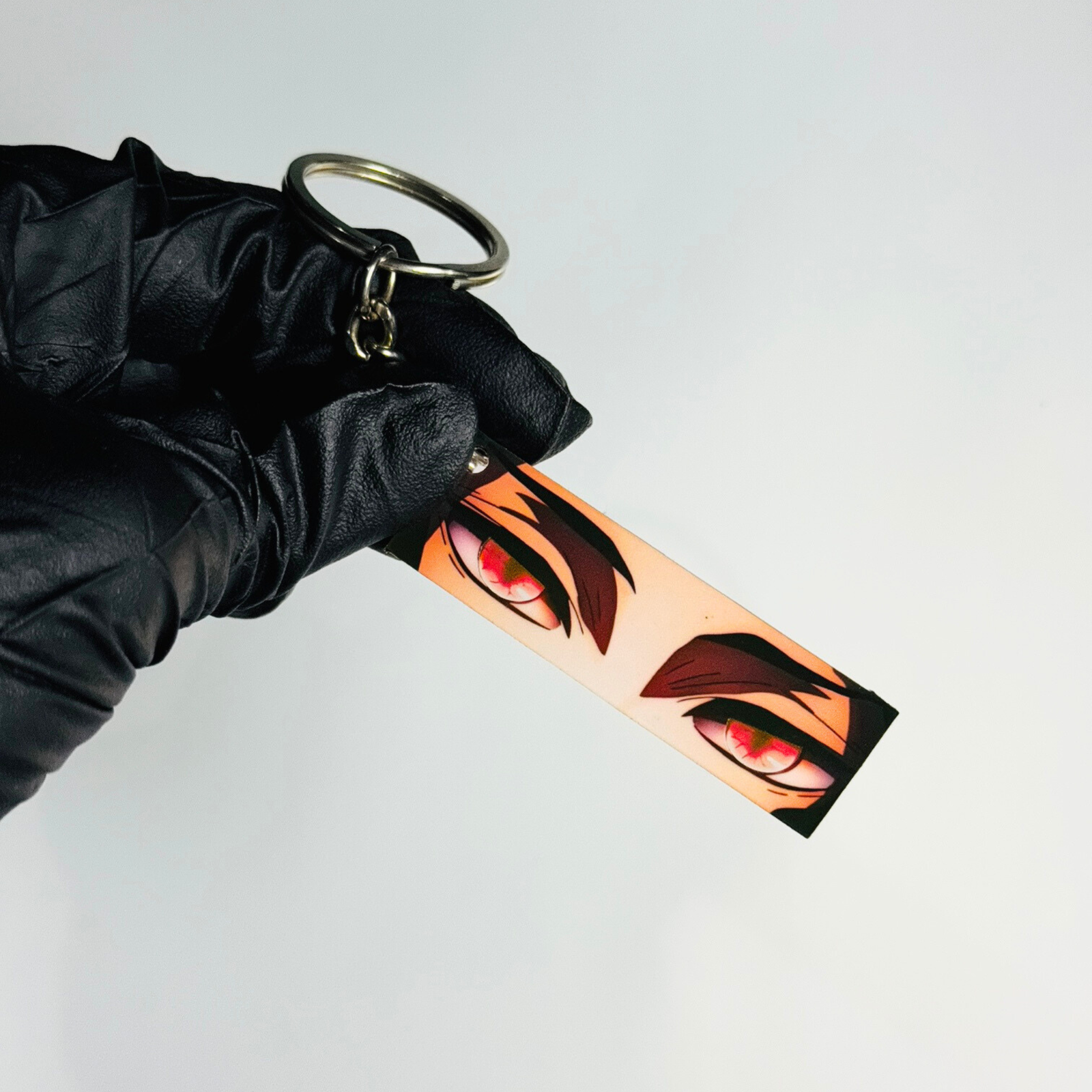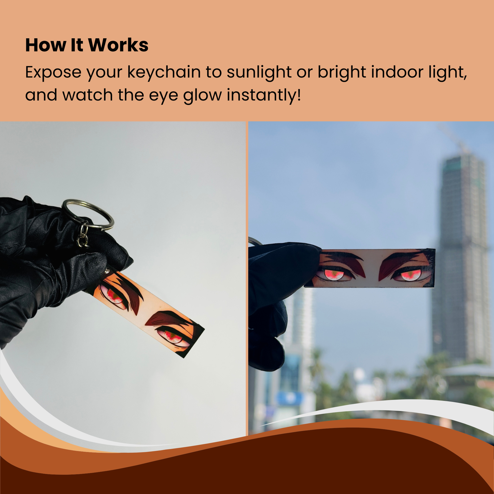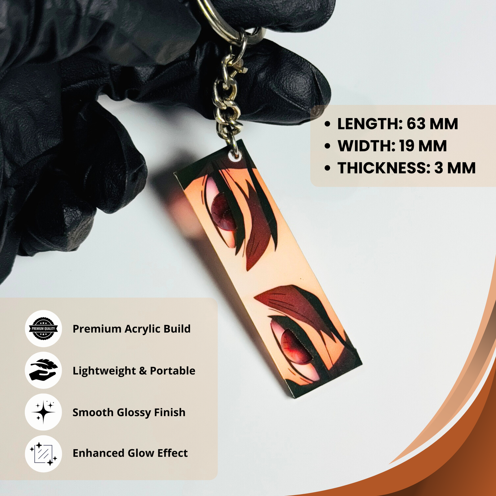 Embrace the dark power of the Demon King with this Muzan Kibutsuji Light-Reactive Glowing Eye Keychain, inspired by the iconic villain of Demon Slayer: Kimetsu no Yaiba.