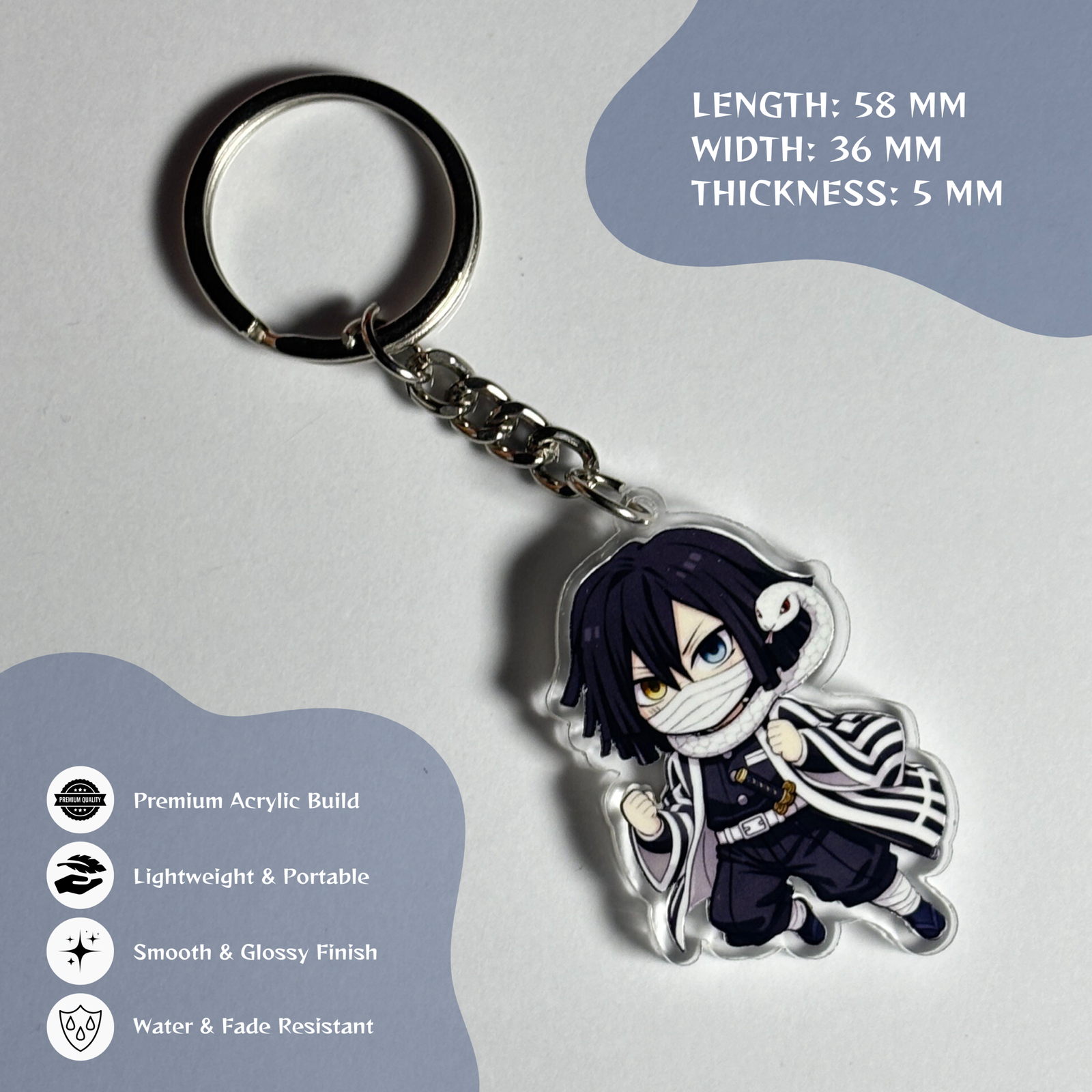 Obanai Iguro Chibi Acrylic Keychain – Demon Slayer Anime Keyring